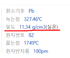 보시는 바와 같이 텅스텐은 같은 부피에 비해 무게가 무겁기 때문에