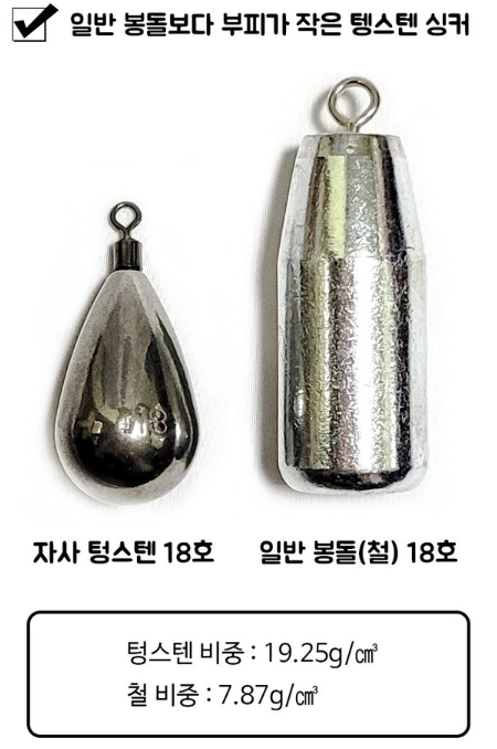 2개입 텅스텐봉돌 텅스텐 물방울 싱커 갑오징어 쭈꾸미 쭈갑 봉돌, 18호(2개입), 1개 - 봉돌/추 | 쿠