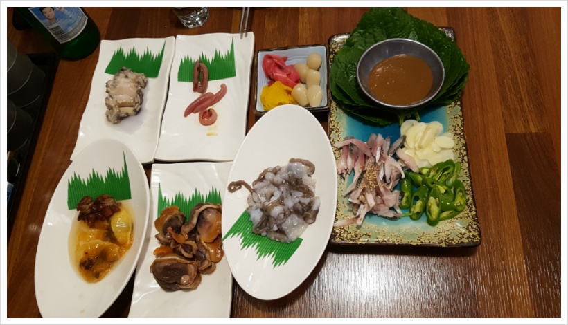 <가을 끝무렵이라 전어도 있었구요, 재래식 된장에 개불, 전복, 피조개, 멍개..>